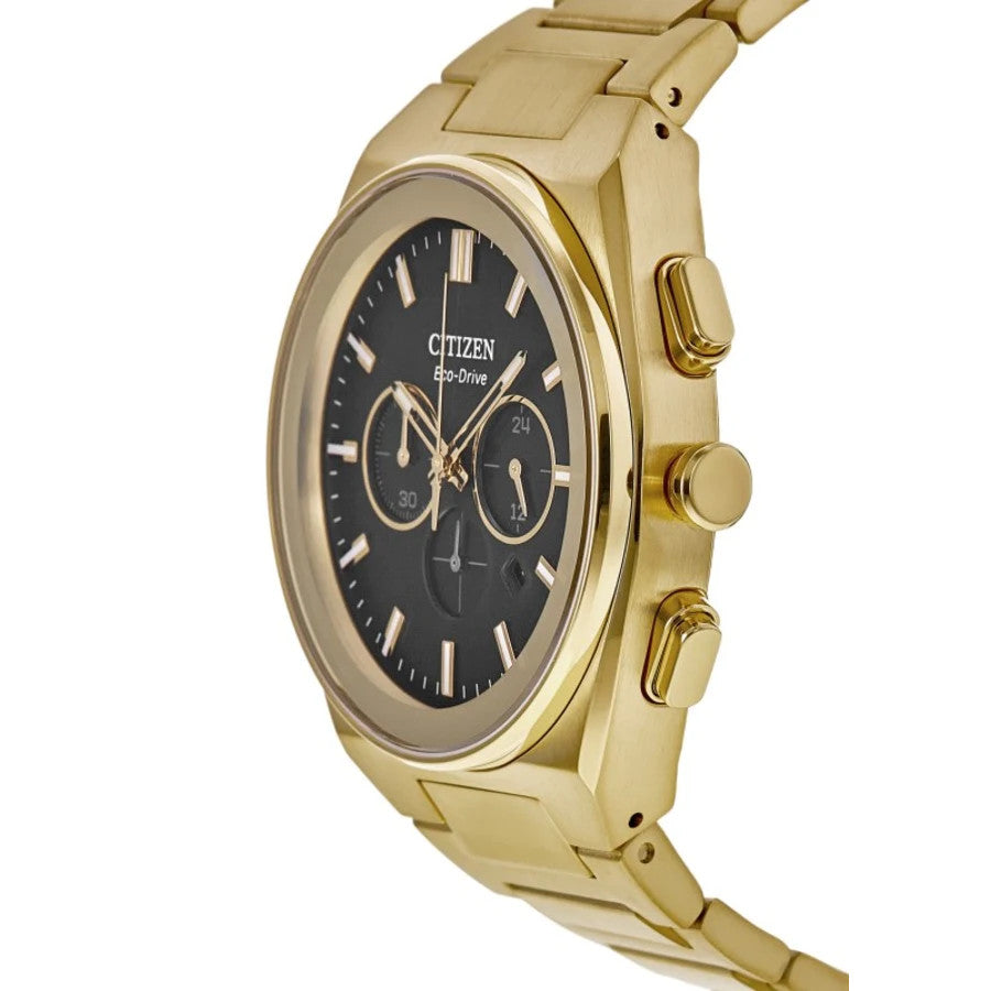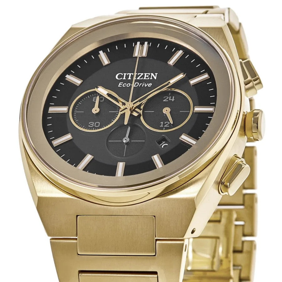 The Citizen Axiom SC Chronograph CA4582-54E is a bold and technically capable sports watch that pairs a luxurious yellow gold aesthetic with professional-grade specifications. Featuring a complex chronograph dial and exceptional water resistance, it's built for style, precision, and rugged performance. Here's a comprehensive look at its key features: