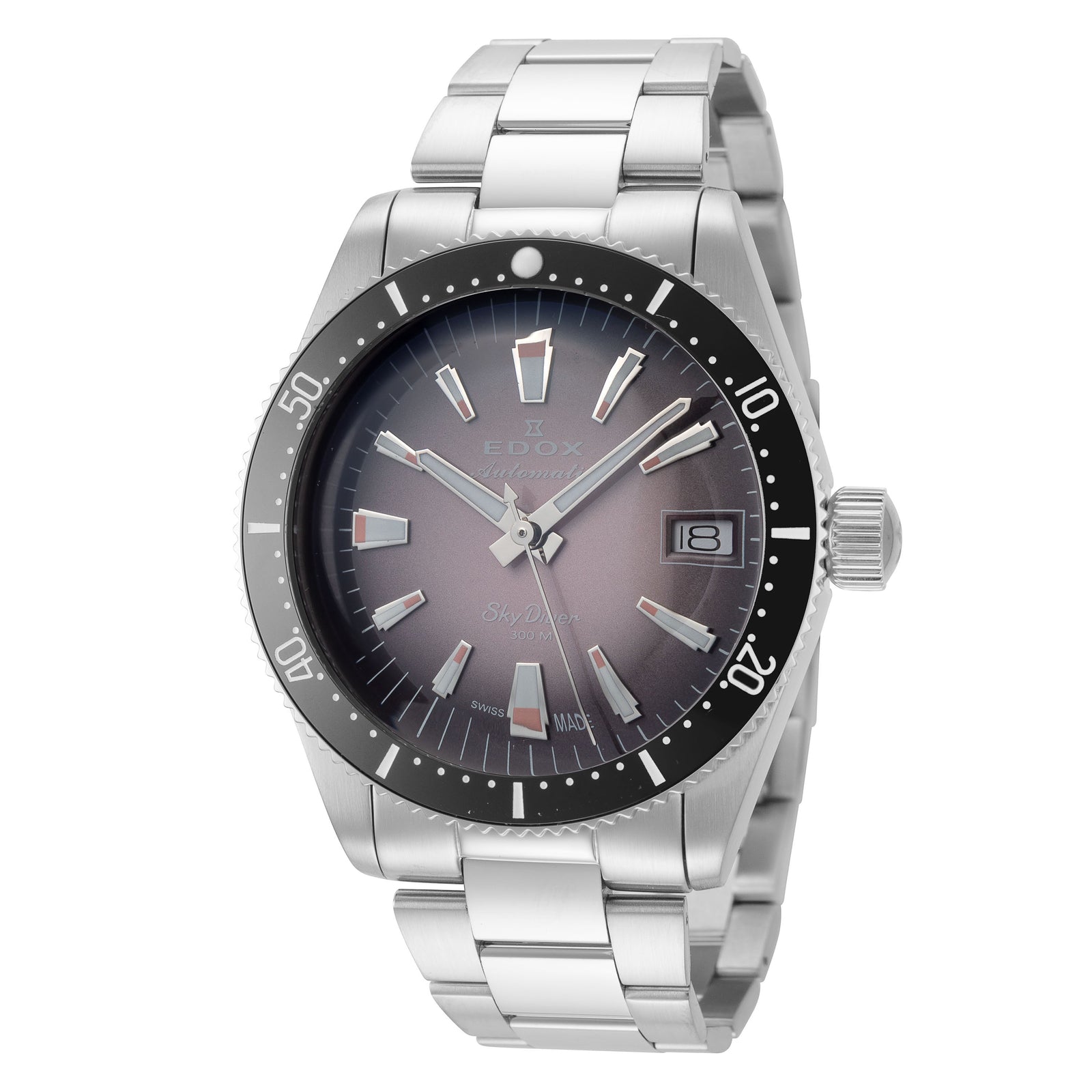 The Edox SkyDiver 80131-3NM-NDRO is a premium Swiss dive watch built for both underwater performance and on-land style. With its rare purple dial, robust 300-meter water resistance, and automatic movement, it’s a standout choice for collectors and active wearers who demand both function and sophistication.