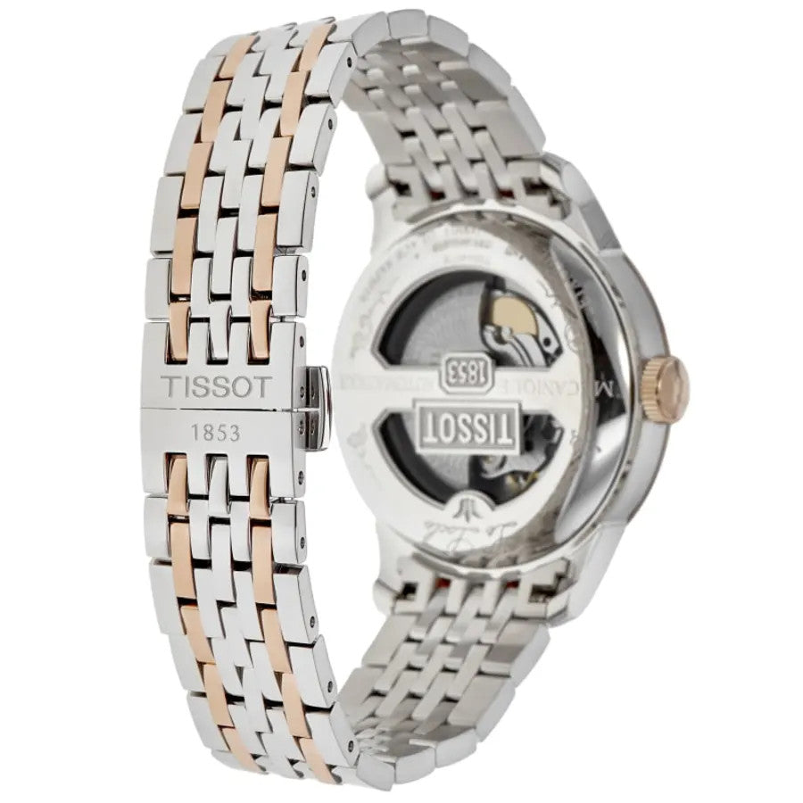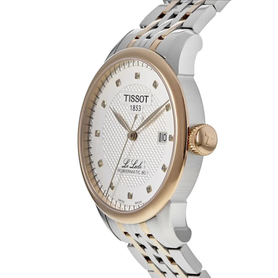 The Tissot Le Locle Powermatic 80 T006.407.22.036.01 is an elegant and refined dress watch that blends classic design with modern watchmaking technology. Featuring a silver diamond dial, two-tone rose gold PVD coating, and Tissot's innovative high-efficiency movement, it's built for sophistication, precision, and enduring style. Here's a comprehensive look at its key features: